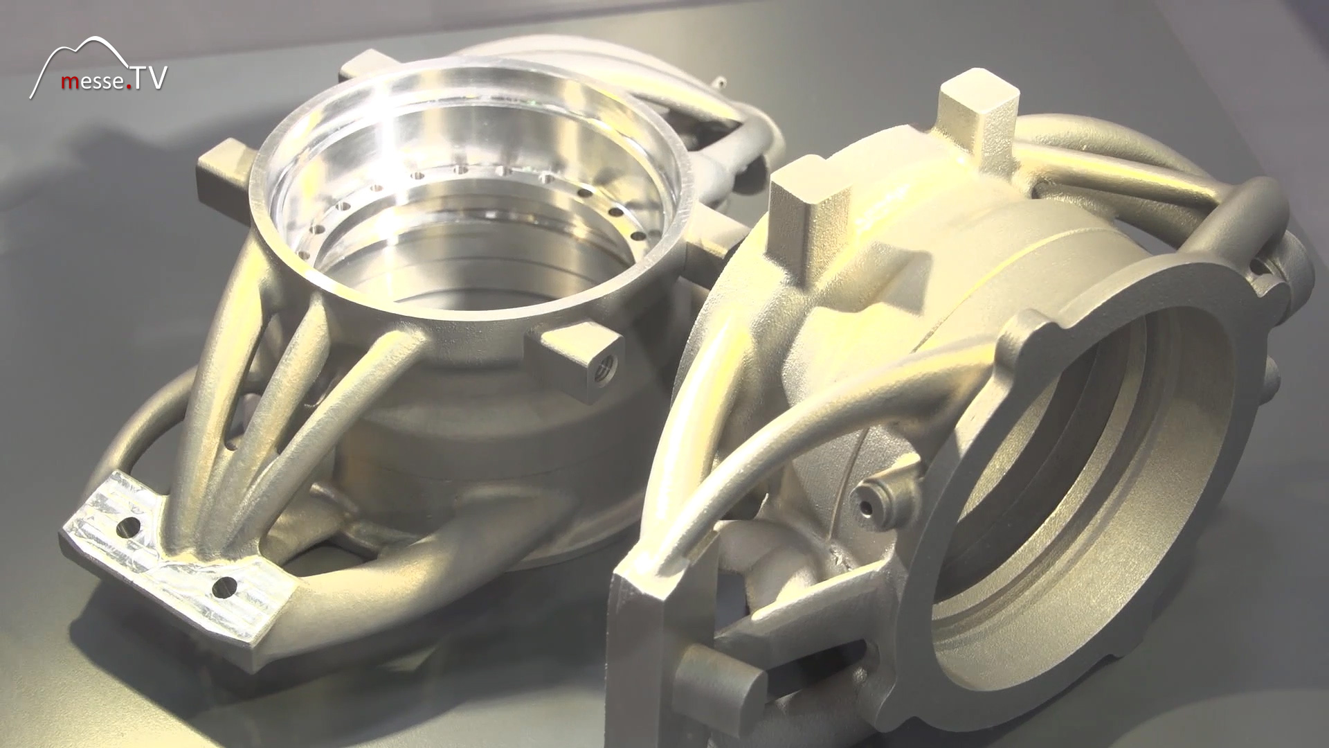 Heute ist es bereits möglich 3D-Druck mit verschiedensten Materialien zu fertigen. Das geht vom Aluminium bis schließlich zum Titan. Ein auf diesem Wege hergestelltes Objekt, hat die Stabilität, die es für deren Einsatz auch braucht. Die Objekte in der Vitrine verdeutlichen diese Kombination aus 3D-Metalldruck und Nachbearbeitung. Das im oberen Bild, stehende Modell zeigt, wies aussieht wenn es direkt aus dem Drucker kommt.