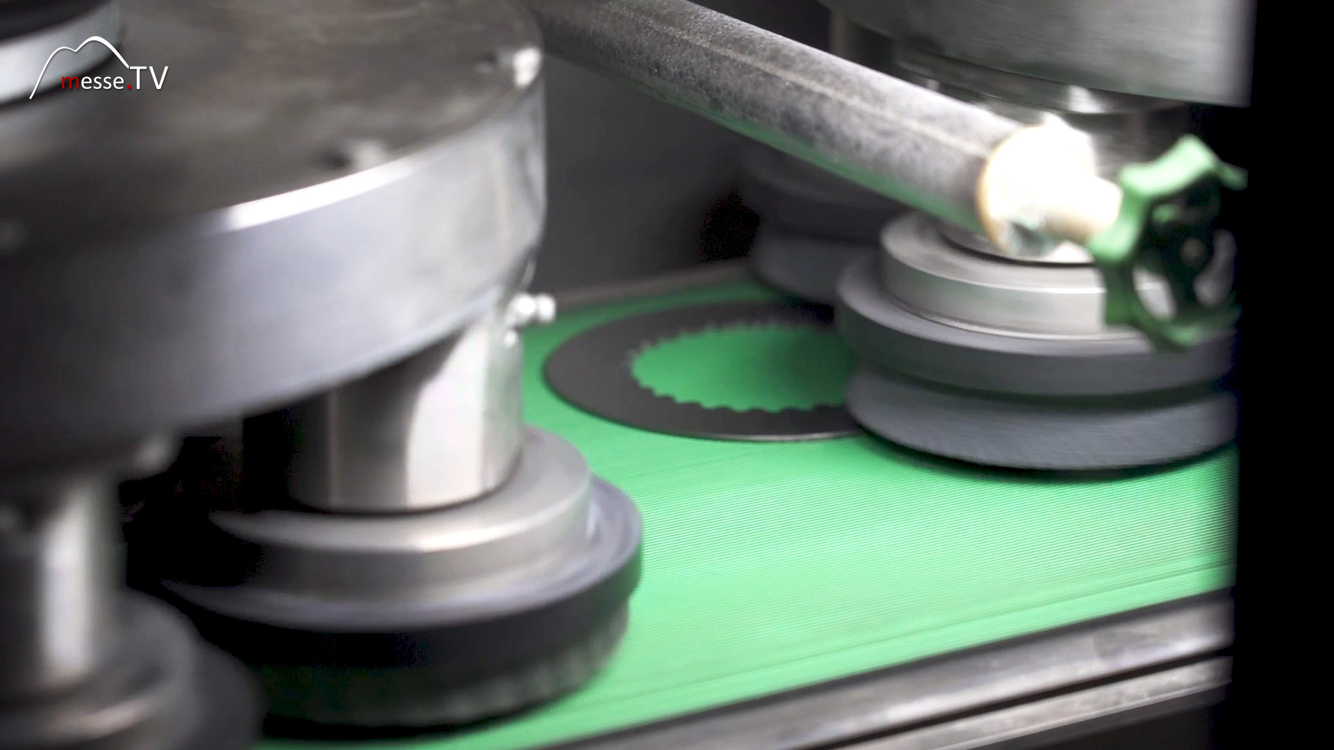 Das Ausstellungsmodell, eine Bürst-Entgratmaschine, Modell Weber TNA 300, ist speziell für Massenstandsteile, Feinschneidteile konzipiert. Sie wird meist für Teile aus der Automobilindustrie wie Kupplungslamellen, Federn usw. verwendet. Die der Presse kommenden Teile werden in der Maschine rotierend zunächst auf einer Seite gebürstet. Anschließend führt das Robotiksystem die Teile zurück auf den Teilwender, damit die Rückseite bearbeitet werden kann.