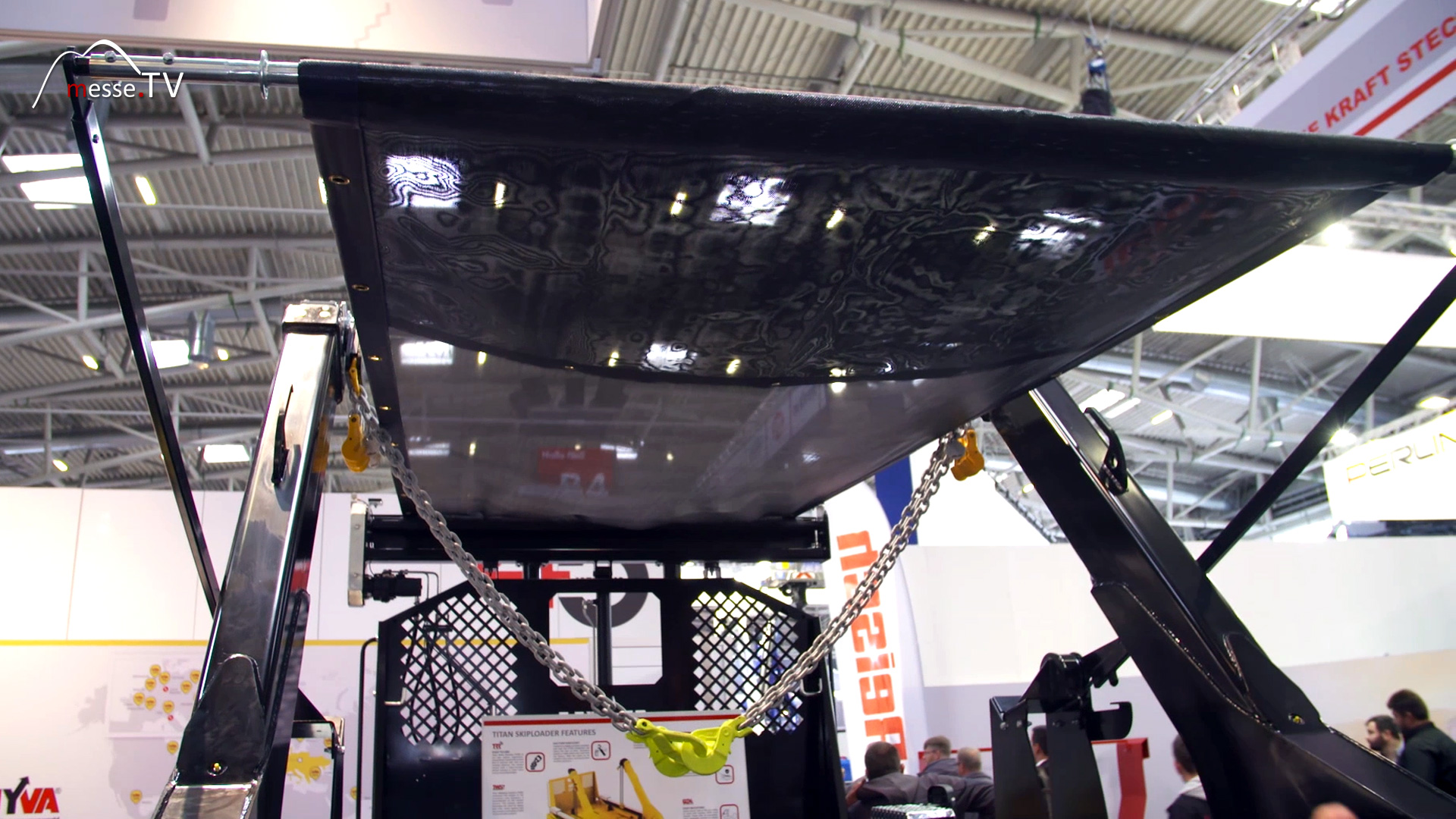 HYVA produces cranes and skiploaders. What are the innovations at bauma 2019? At first glance, it looks like a skiploader with a sunroof. Of course, it's not. The detachable system is used to secure the load. This immediately seems logical, but is still very new for Germany.