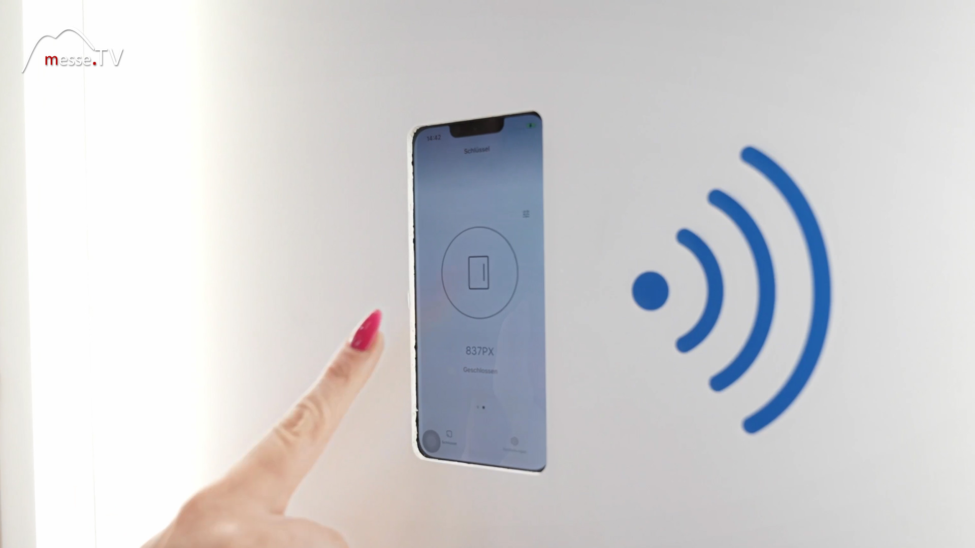 The product range includes concepts for very simple access using a smartphone. All you need to do is engage the handle on the display and the door opens. There is an induction lock in the door, which works by transmitting an inductive current from the locking part directly to the lock. No wiring is required in the door leaf, which means that such a lock is perfect for retrofitting and easy to put into operation. At the same time, in addition to operation in SmartAccess via Bluetooth, access can be gained with a conventional key if the smartphone or Bluetooth should not work in exceptional circumstances.