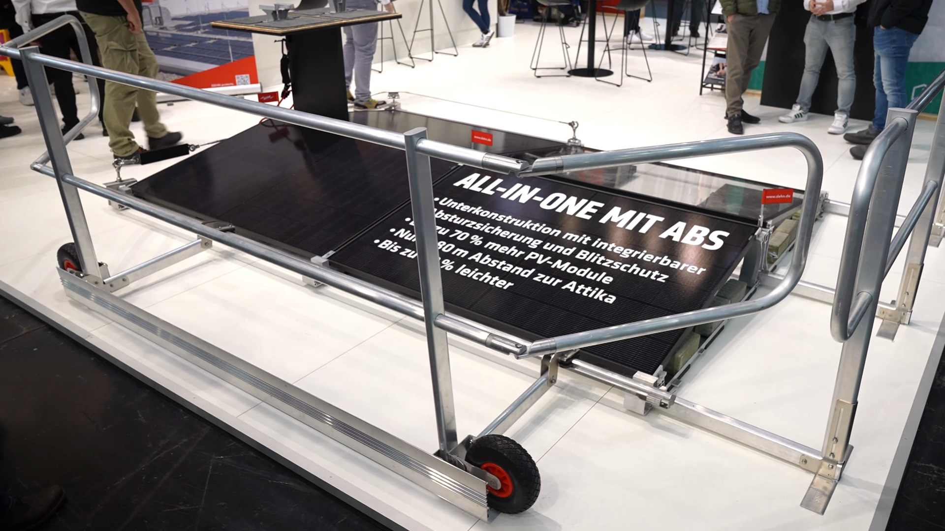 Another highlight of the ABS Base system is the option of designing the railing system so that it is not visible from the road. In the parking position, which only takes up the area of two photovoltaic modules, the system is laid flat on the roof surface. This not only preserves the aesthetic appearance of the building, but also ensures minimal interference with the architecture. ABS Base thus combines safety, efficiency and design and offers a holistic solution for photovoltaic systems on roof surfaces.
